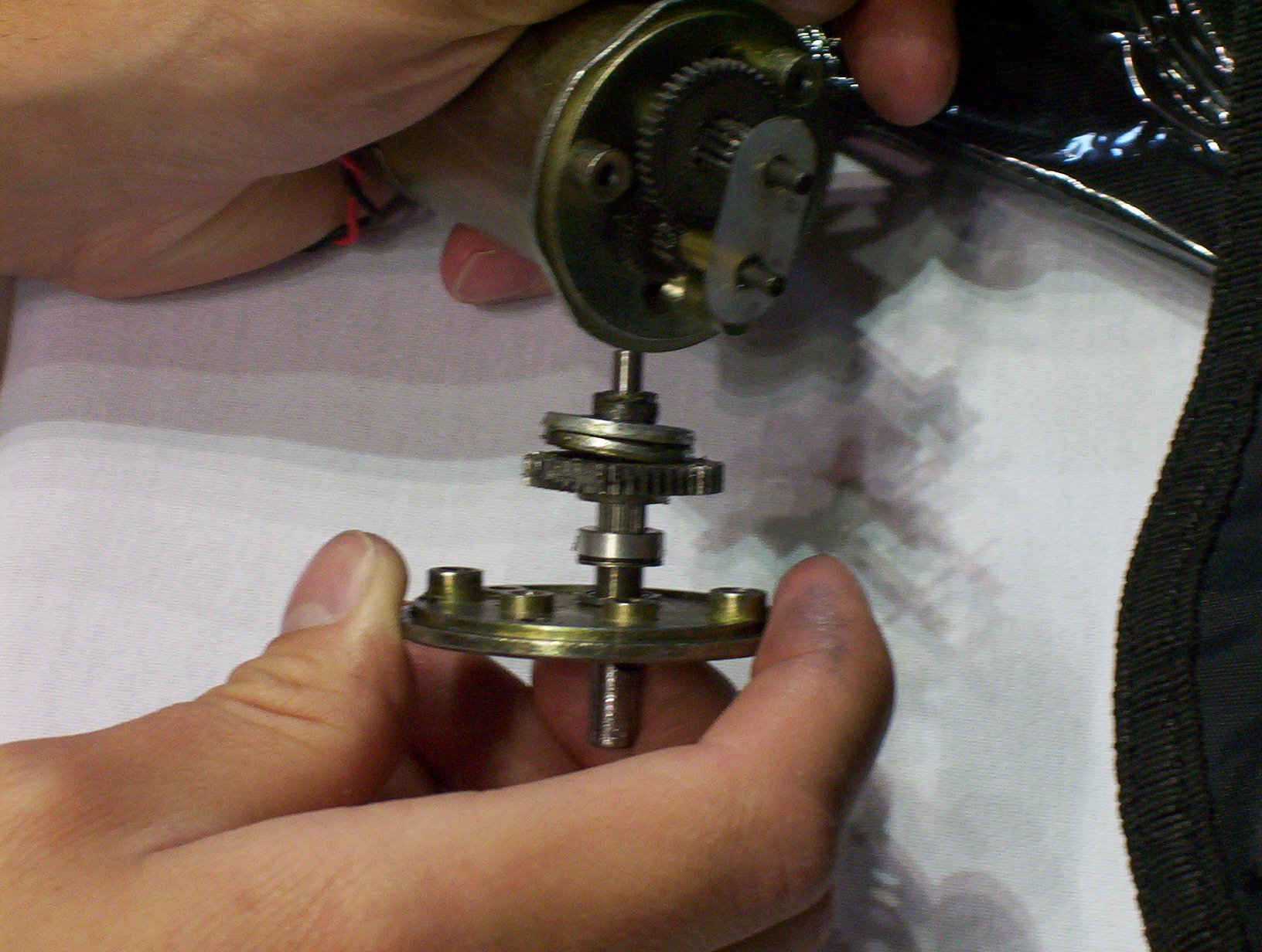 If you can't tell, this is a picture of a stripped gear. Catastrophically failed engines weren't going to help our cause, and we were about to throw in the towel and then Nick said, "NO WAY!" and got straight to work. See?: