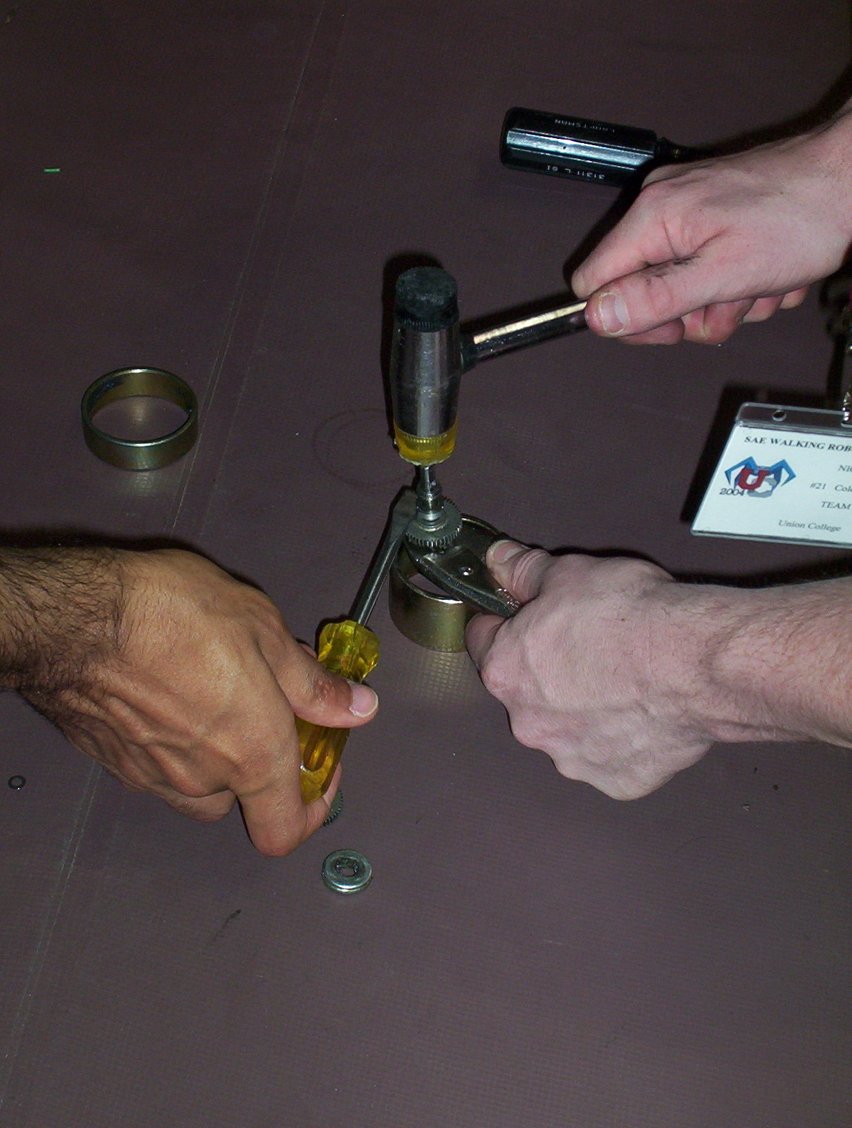 This was our clever method for knocking the gears and spacers off the shaft.